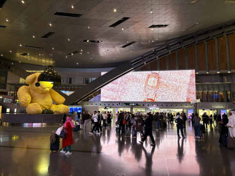 | カタール・ドーハのハマド空港に到着。巨大空港(29ku)で近代的、成田(16ku)など比較になりません。 ボクは中東エリアでは、UAEのドバイ国際空港を利用したことは何度かあり、近代的・超豪華で、それに負けず劣らずでした。 暖房節約で寒々した成田空港はもはや途上国の空港、あるいは唯のローカル空港、という感じがします。 空港はその国の玄関であり、顔だと思うのですが、、、。 |