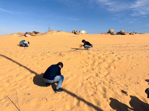 | アスワンから更に280km南の、スーダン国境に近いアブシンベルに向かいます。左側はナイル川で、道路は川岸から10km〜20km離れたところを走っています。 右は何百km、いや数千キロ先まで続くサハラ砂漠です。砂漠の広さは800万Ku(日本の20倍の面積)で、ちょっと想像もできません。 途中でナグラーさんが袋を配ってくれ、皆んなで砂漠の砂を採取。いい記念になりました。 ビデオ: アブシンベルまでのサハラ砂漠の風景 |