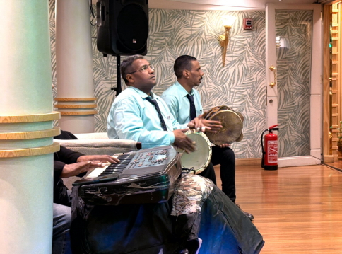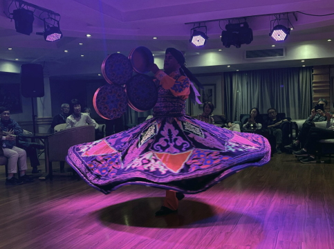 | クルーズ船に戻って夕食を済ませ、サロンでショーをやります、という事で行くと、例の有名な”クルクル・ダンス”。 テレビで数回見たことがありますが、実際に見るのは初めてでクルクル見事に回り続けます。 直径3m近くあるスカートをクルクルと回し続けます。いつぶっ倒れるか見守りますが、ダンサーは笑顔を絶やさずスカートの形などを変えながら踊り続けます。 ダンサーは男です。 ビデオ:タンヌーラ(1) |