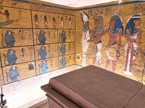 | ではなぜ、こんなところに王の墓を作ったかというと、4000年前のようなピラミッドでは目立って、すぐに盗掘にあったのでこれを防ぐために谷の地下に作ったぼです。 では盗掘は防げたか?答えは「ノー」で、64基以上の墓のうち盗掘を免れたのはだた1基、これがかの有名な”ツタンカーメン”の墓です。 なぜツタンカーメンの墓は荒らされなかったのか? ツタンカーメンは権威も弱く、墓も小さく、おまけにラムセス6世の墓の建設で入り口が埋まっていた、、、。 盗賊に見つからなかった、という事らしいです。 |