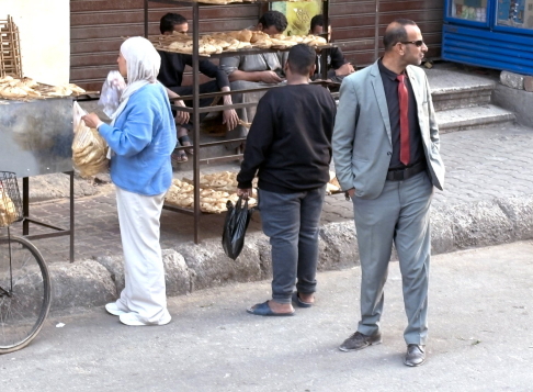 | ルクソールの観光中、目つきの鋭い精悍な男性がバスに乗り、我々の行き先の全てに同行してました。 彼はガードマンではなく、警察官または内務省の護衛要員です。上着の下にはサブマシンガン(MP5K?)を肩から吊しており、銃身がチラチラ見えました。 ボクがバスで寝過ごしたときは迎えに来てくれて、ニッコリ。笑うと可愛い顔をしてました。ガイドのナグラーさんがバスを降りて買い物をするときも、写真のように周囲を警戒してました。観光産業は国家の生命線、観光客を守ることは、経済安全保障そのもの、という事ですね。 |